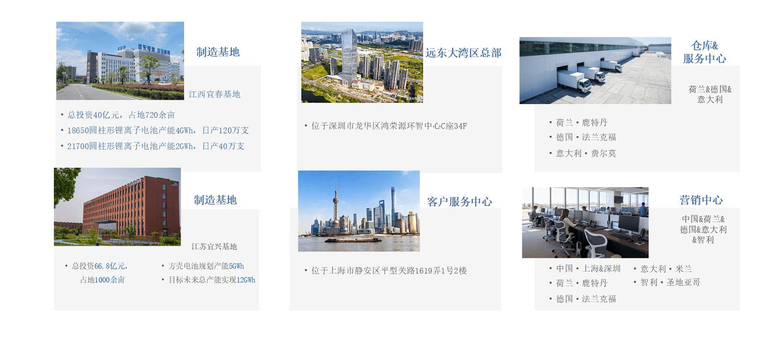 远东电池创立于2009年,是远东股份(股票代码:600869)旗下子公司。远东电池深耕新能源领域,是一家集研发、生产、销售于一体的全球化电池及储能系统服务商。公司实现从电芯到储能系统的全线布局,致力于为全球客户提供安全、可靠、可持续的储能及智慧能源管理服务,场景覆盖源网侧、工商业及户用。 远东电池以“共建共享安全 绿色 美好生活”为使命,持续探索储能技术边界,助力全球碳中和目标,致力于成为世界领先的电池及储能系统服务商。